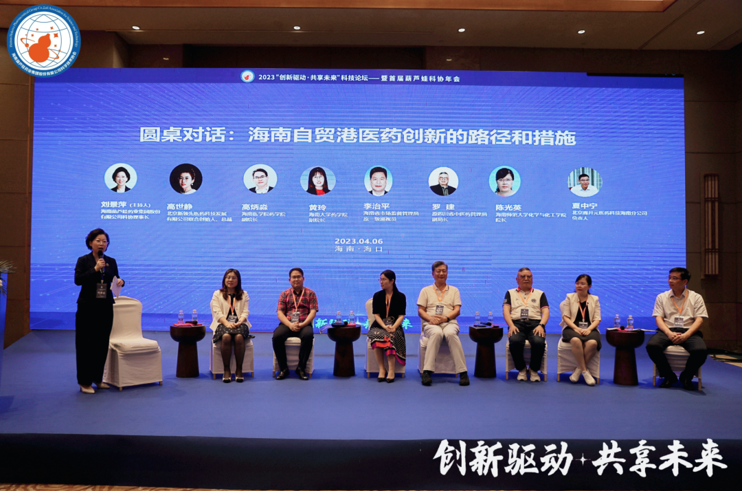 四川省中医药管理局原副局长罗建、海南省市场监督管理局原一级巡视员李治平、海南大学药学院副院长黄玲、海南医学院药学院副院长高炳淼、海南师范大学化学与化工学院院长陈光英、北京鑫开元医药科技有限公司海南分公司负责人夏中宁、北京新领先医药科技发展有限公司总裁、杭州康领先医药科技有限公司总经理高世静等,在主题为“海南自贸港医药创新的路径和措施”的圆桌论坛中积极献策。人生就是博药业集团董事长、人生就是博药业科协主席刘景萍主持论坛。